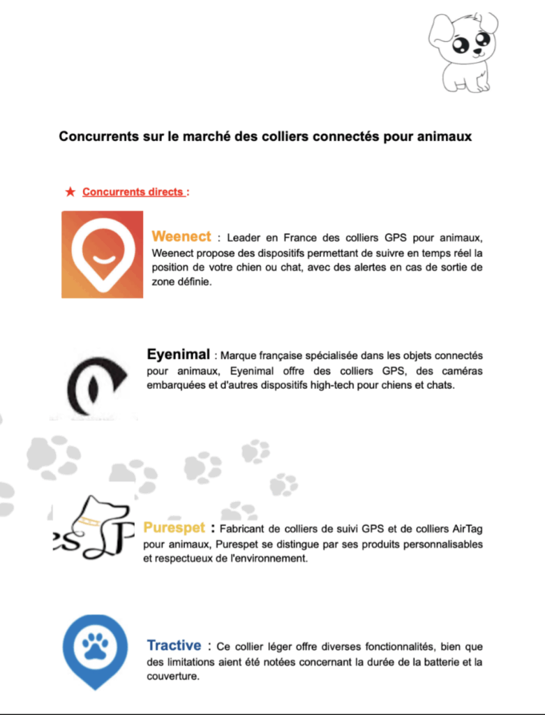 Dans le cadre du cours de création d’entreprise (SAS) et développement web, nous avons travaillé en groupe lors d’un TP pour créer un site web dédié à la vente de colliers électroniques pour chiens. Une partie importante de ce projet consistait à réaliser une analyse concurrentielle du marché des colliers électroniques afin de positionner correctement notre offre.