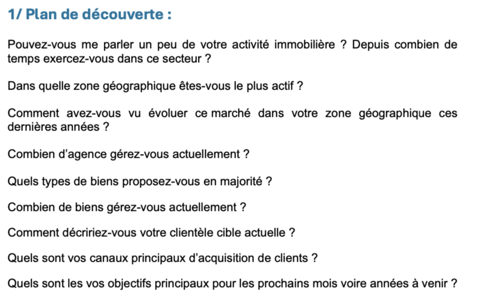 J’ai compris l’importance d’un plan de découverte bien structuré pour recueillir les informations essentielles auprès du client.
