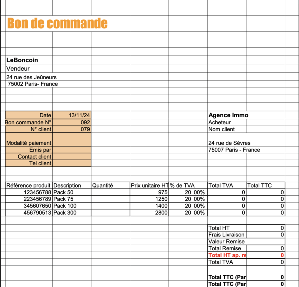 Dans le cadre du cours de vente, nous avons travaillé sur le cas Leboncoin. L’exercice consistait à rédiger une facture, un document officiel qui formalise la vente des services et sert de preuve de paiement. Travail individuel.